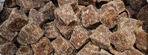 Jaggery is a traditional non-centrifugal cane sugar[1] consumed in the Indian subcontinent, Southeast Asia, North America,[2] Central America, Brazil and Africa.[3] It is a concentrated product of cane juice and often date or palm sap without separation of the molasses and crystals, and can vary from golden brown to dark brown in colour. It contains up to 50% sucrose, up to 20% invert sugars, and up to 20% moisture, with the remainder made up of other insoluble matter, such as wood ash, proteins, and bagasse fibres.[3] Jaggery is very similar to muscovado, an important sweetener in Portuguese, British and French cuisine.